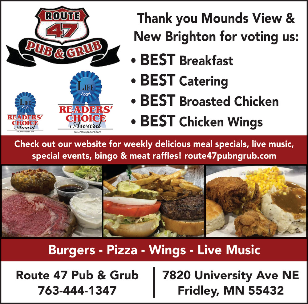 Ads for Route 47 Pub And Grub in Blaine, MN