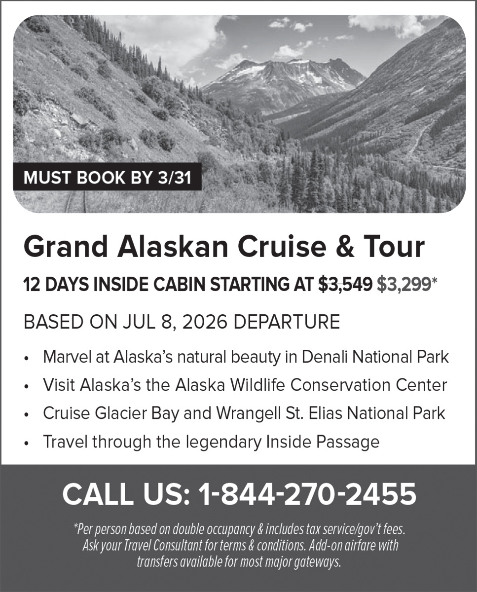 Jan 17, 2026. Central Grand Alaskan Cruise & Tour Travel Ads from Laker & Pioneer