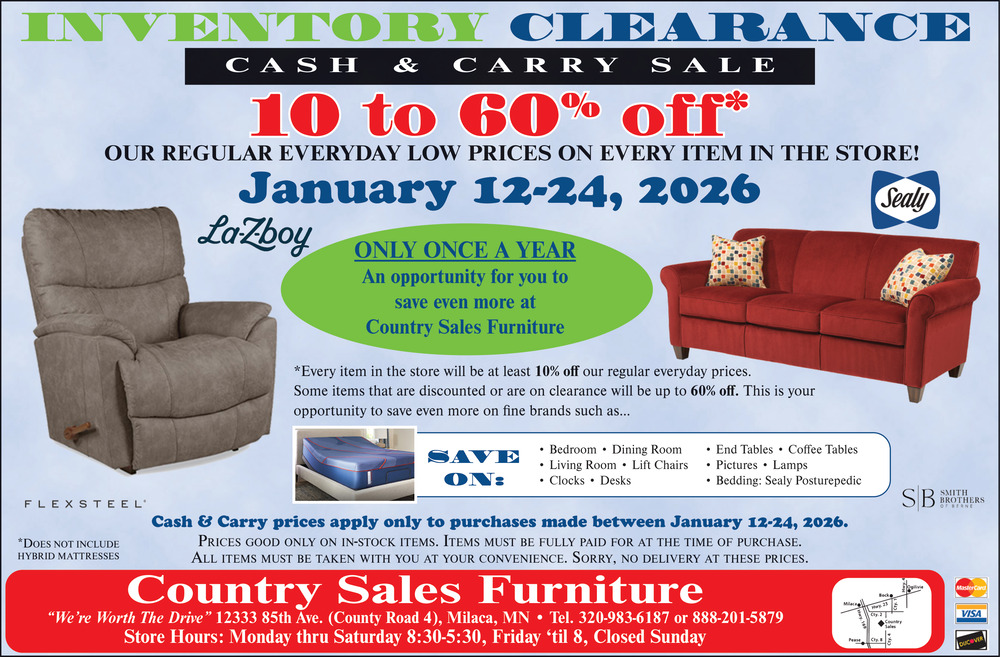 Jan 18, 2026. Country Sales Furniture Home Furnishing Ads from County News Review