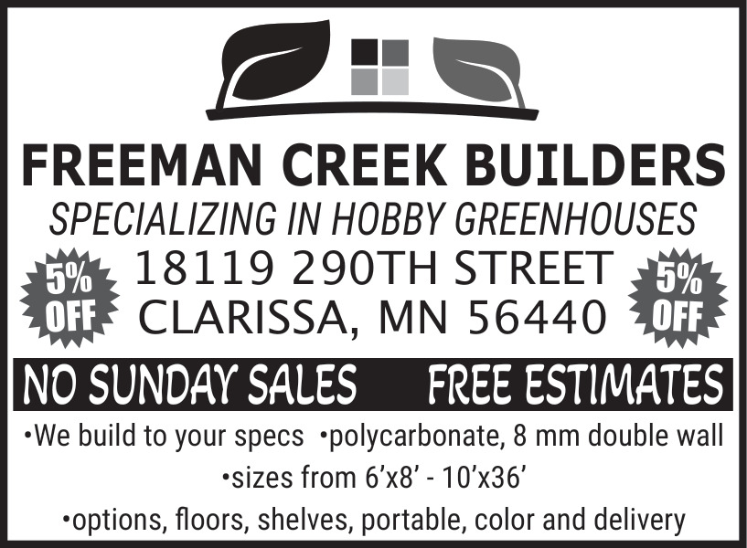 Ads for Freeman Creek Builders in Clarissa, MN