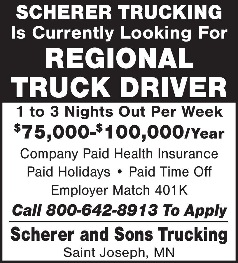 Ads for Scherer & Sons Trucking in St Joseph, MN