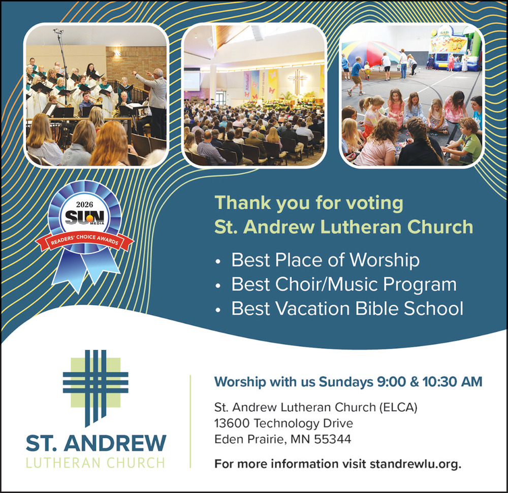 Jan 29, 2026. St. Andrew's Lutheran Church Worship Ads from Sun Current