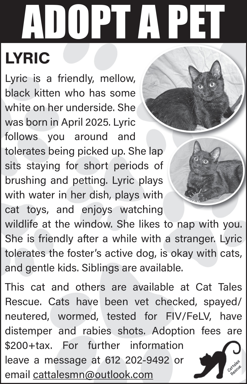 Jan 29, 2026. Cat Tales Rescue Pets Ads from Sun Sailor