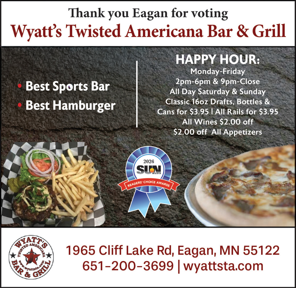 Jan 30, 2026. Wyatt's Twisted Americana Restaurants Ads from Sun Thisweek