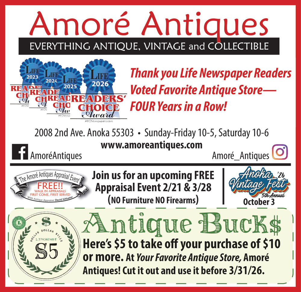 Ads for Amoré Antiques in Anoka, MN