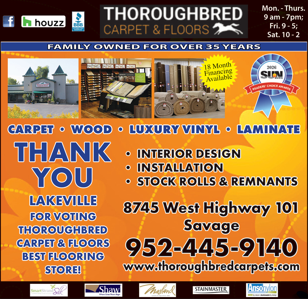 952-445-91408745 W Hwy 101 Frontage RdSavage, MN 55378(Thoroughbred Carpet & Floors)