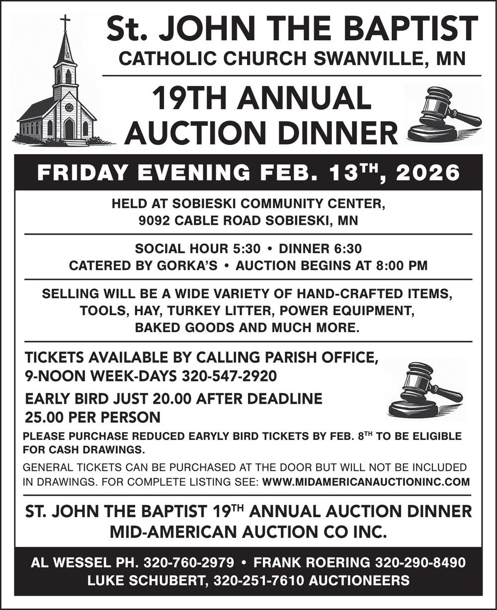 Feb 08, 2026. St. John Baptist Catholic Church & School Events Ads from Morrison County Record