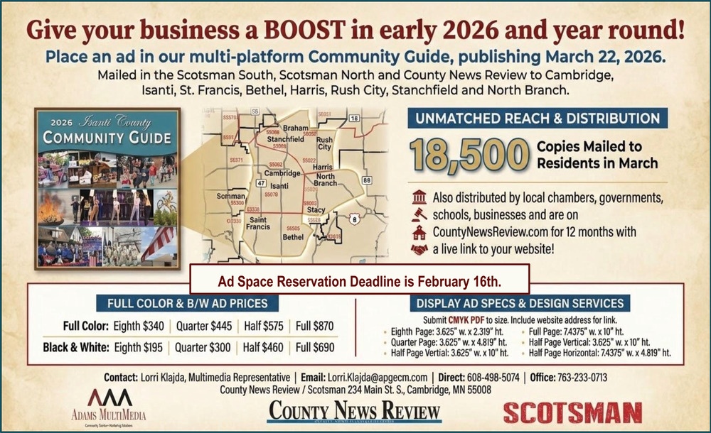 North Branch, Rush City, Braham, Cambridge, Isanti