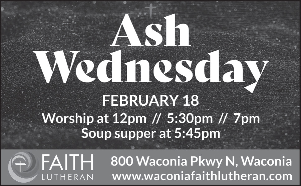 Feb 12, 2026. Faith Lutheran Church - Waconia Church Ads from Sun Patriot