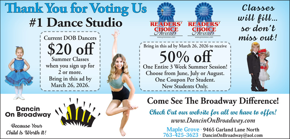 Ads for Dancin On Broadway in Maple Grove, MN
