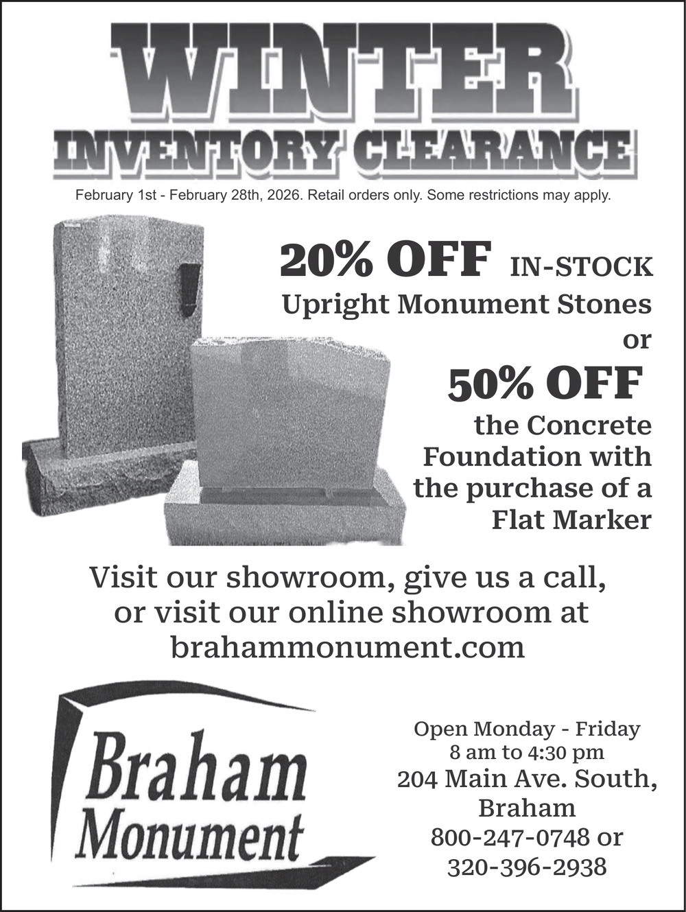 Ads for Braham Monument in Braham, MN