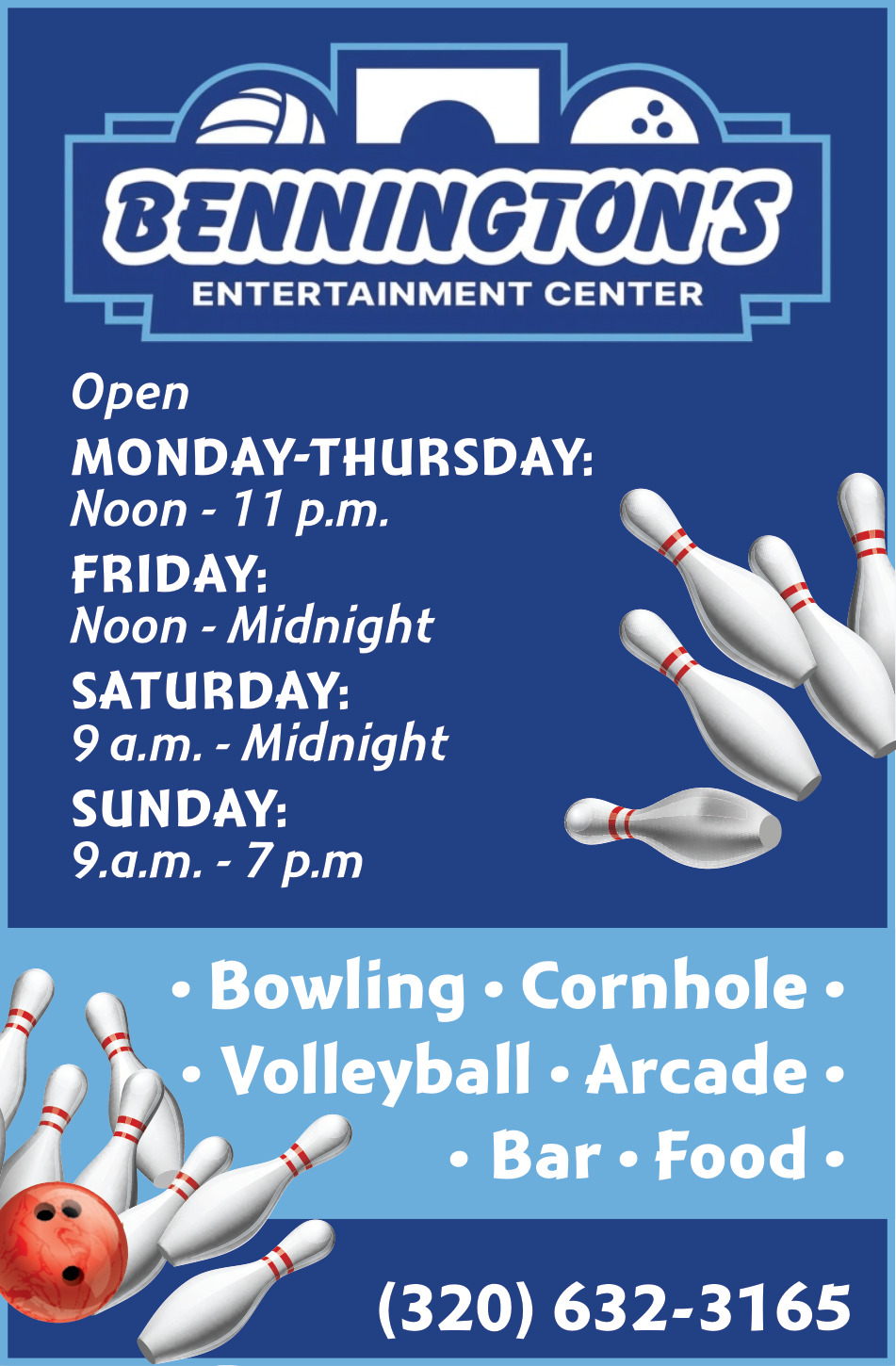 Ads for Bennington's Entertainment Center in Little Falls, MN
