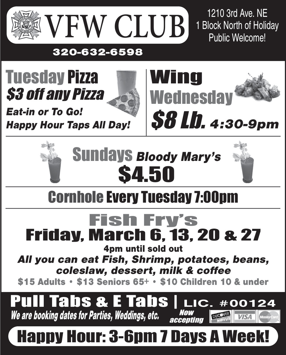 Feb 22, 2026. Vfw Club Events Ads from Morrison County Record