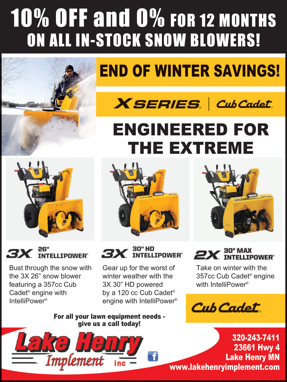 10% OFF and 0% for 12 Month On All In-Stock Snow Blowers!
