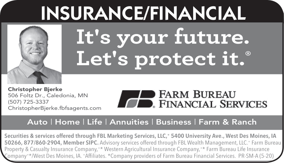 Feb 25, 2026. Farm Bureau Financial Services - Christopher Bjerke Insurance Ads from Caledonia Argus