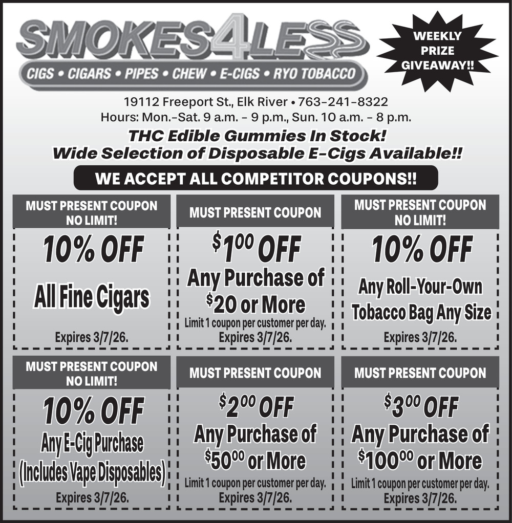 763-241-832219112 Freeport St,Elk River, MN 55330(Smokes 4 Less)