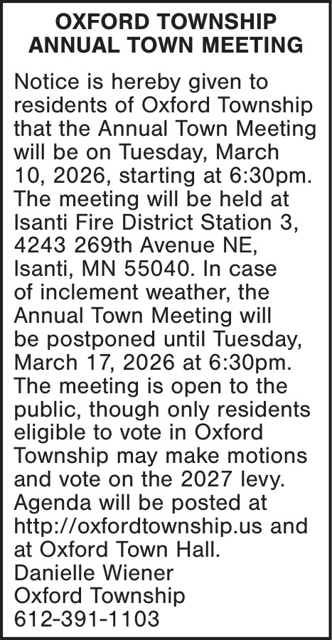 Mar 01, 2026. Oxford Township Government Ads from County News Review