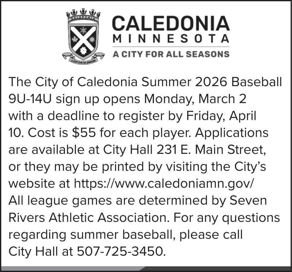 Mar 04, 2026. Caledonia Minnesota Public Notice Ads from Caledonia Argus