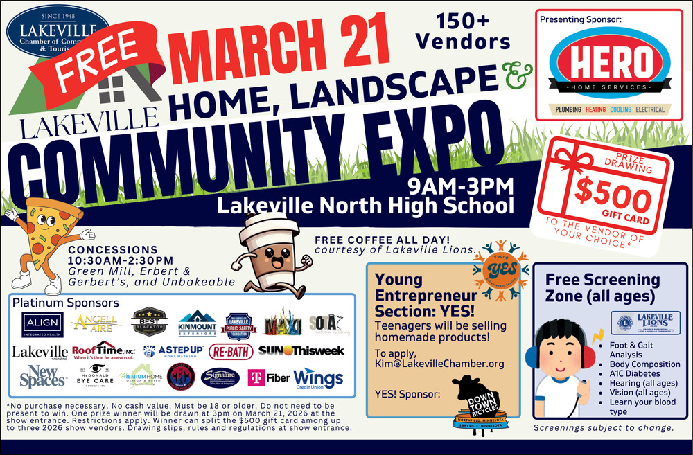 Mar 06, 2026. Lakeville Chamber of Commerce & Tourism Chamber of Commerce Ads from Sun Thisweek