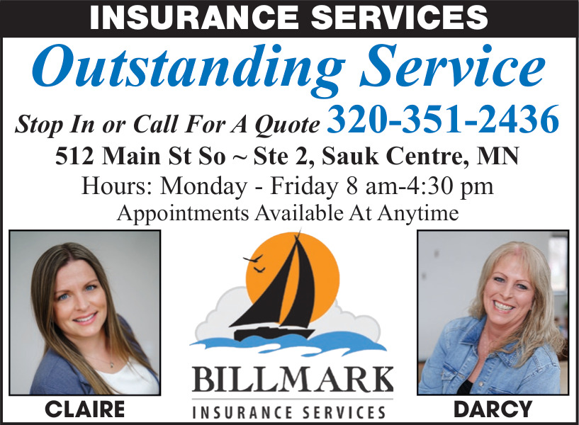 Ads for Billmark's Insurance Services LLC in Sauk Centre, MN