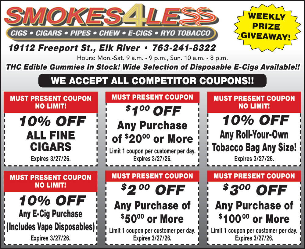 Ads for Smokes 4 Less in Elk River, MN
