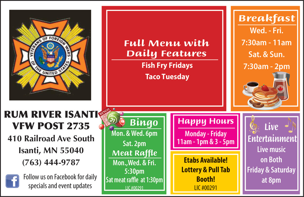 Mar 22, 2026. Rum River Isanti V.F.W. Organization Ads from County News Review