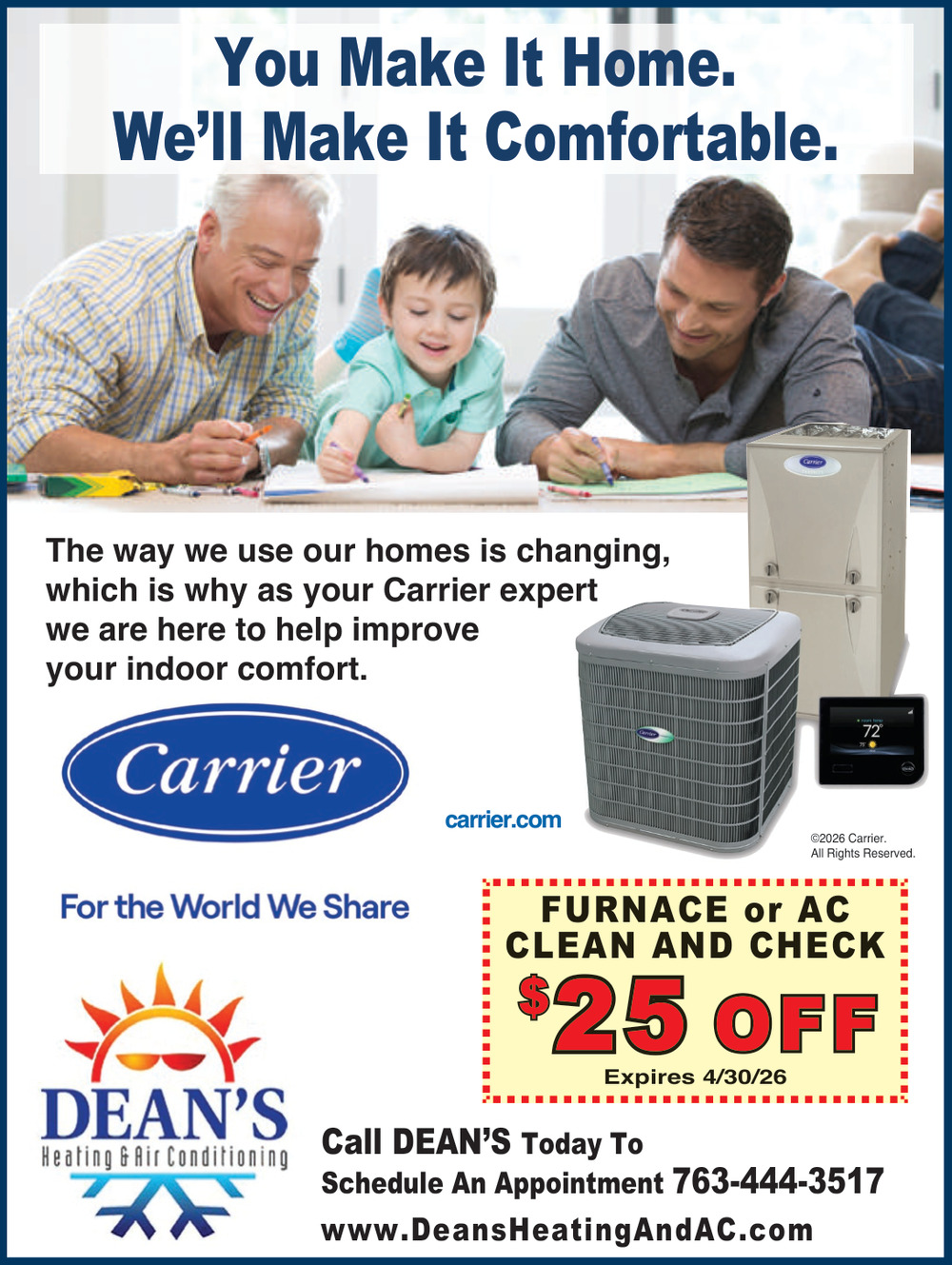 Ads for Dean's Heating & Air Conditioning in Cambridge, MN