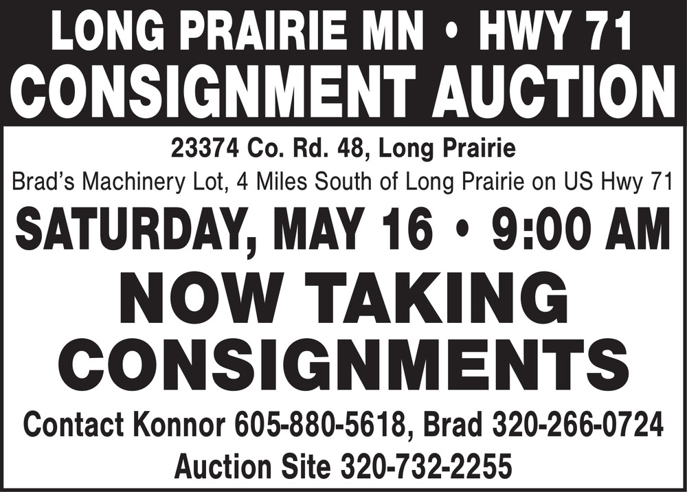Mar 22, 2026. 605-880-5618 Auctions Ads from Morrison County Record