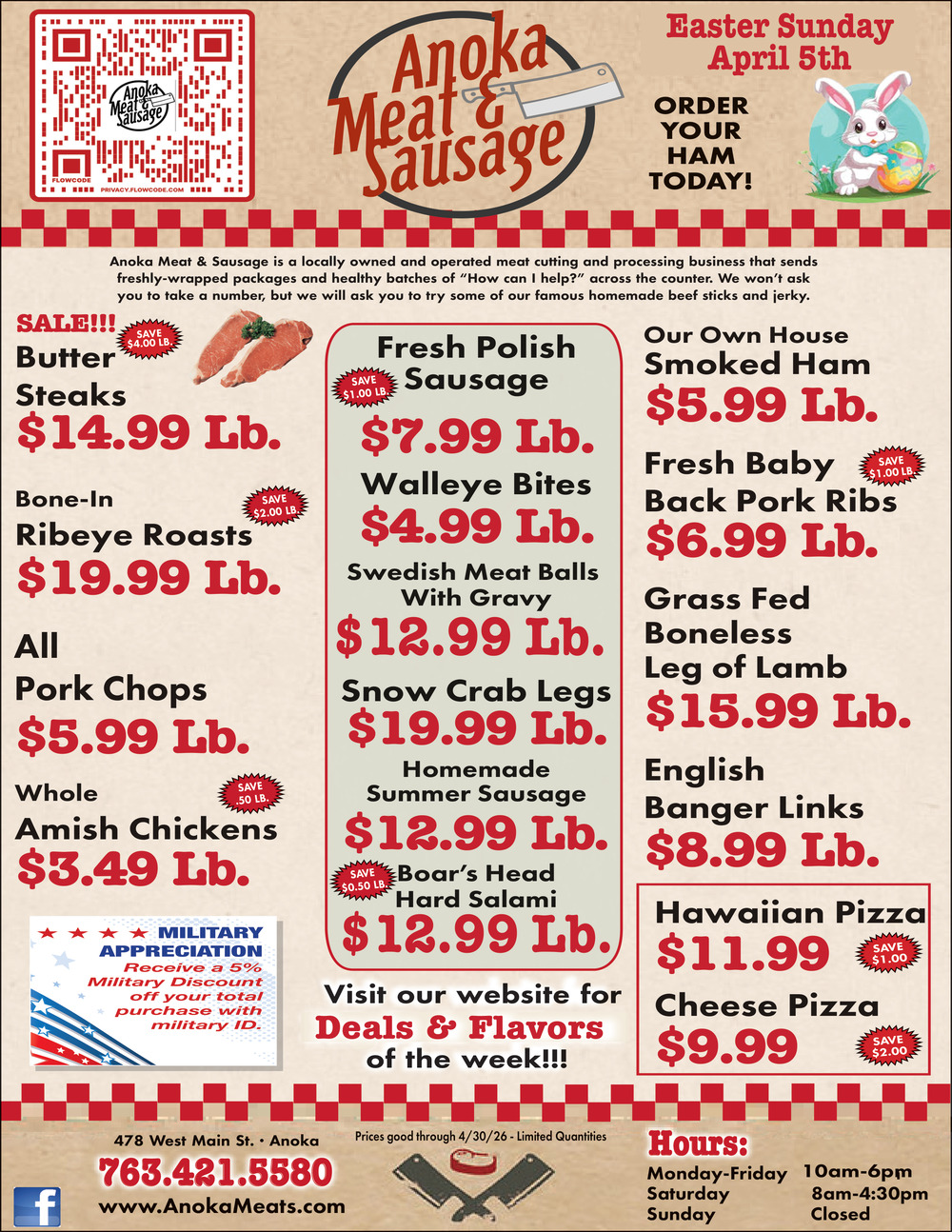 Ads for Anoka Meat & Sausages in Anoka, MN