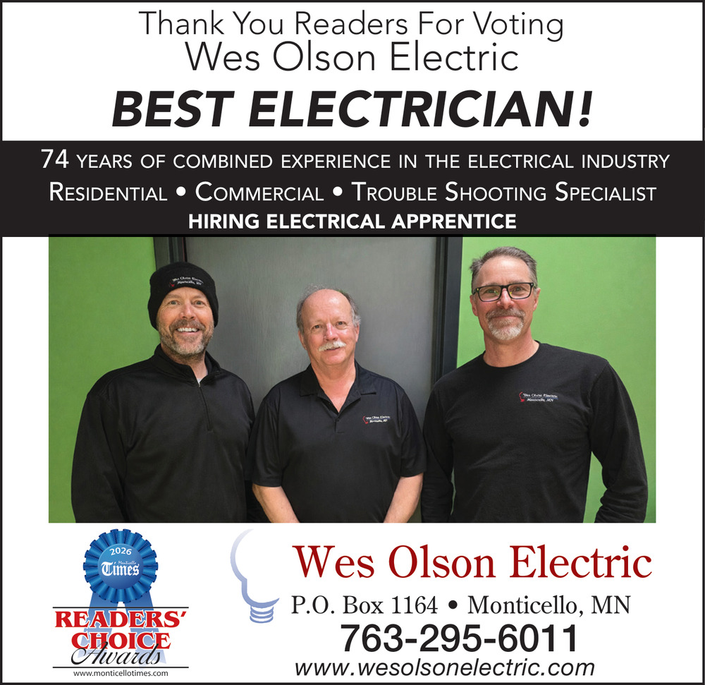 Ads for WES OLSON ELECTRIC in Monticello, MN