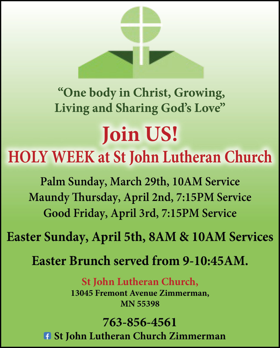 Mar 28, 2026. St. John Lutheran Church - Zimmerman Church Ads from Star News