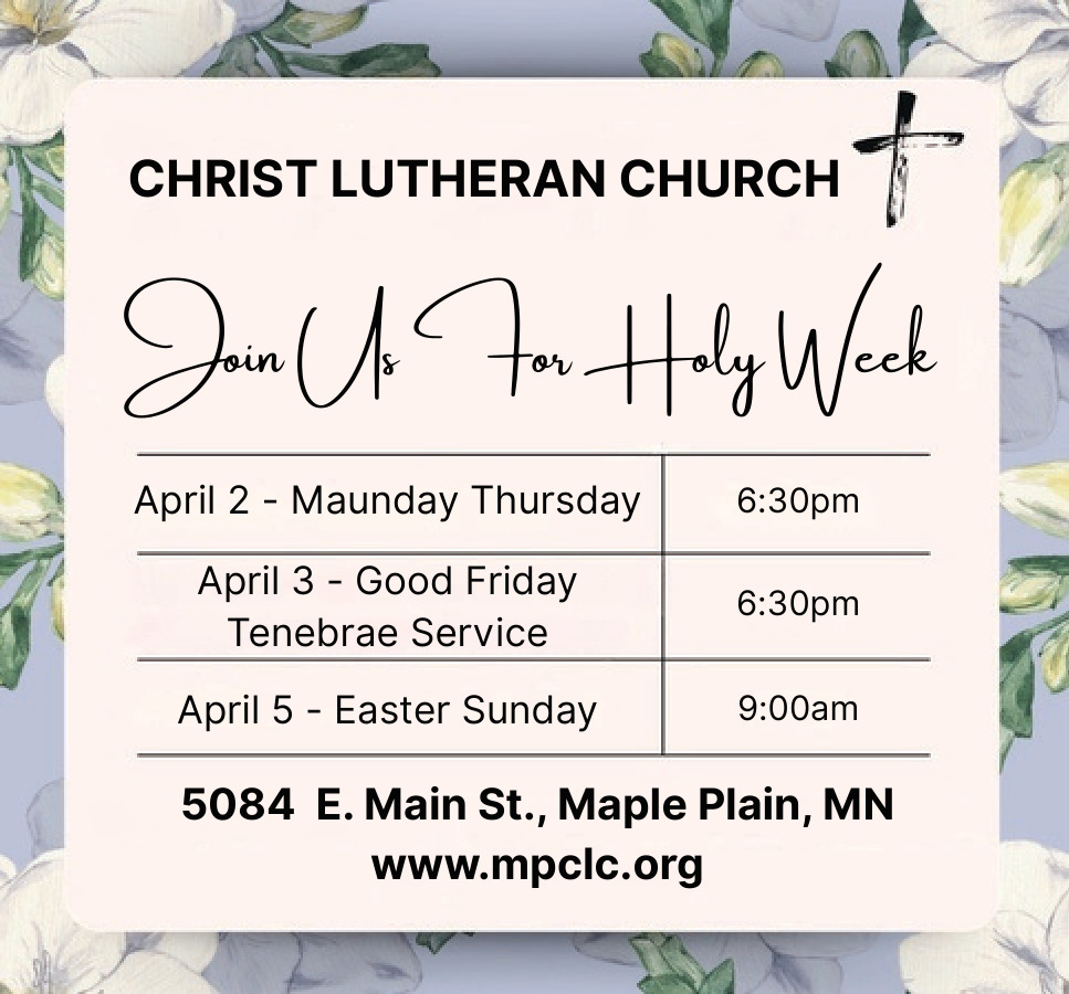 Mar 28, 2026. Christ Lutheran Church - Maple Plain Church Ads from Laker & Pioneer