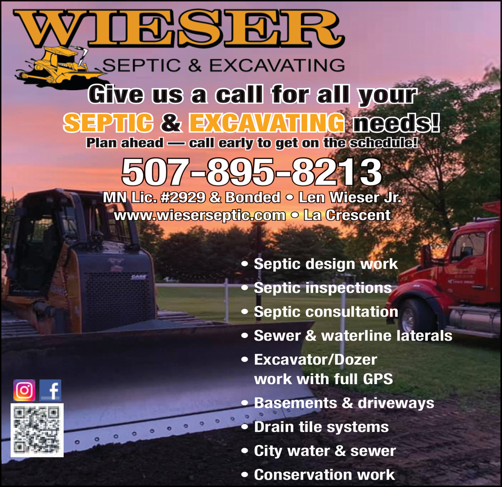 Ads for Wieser Septic & Excavating in La Crescent, MN