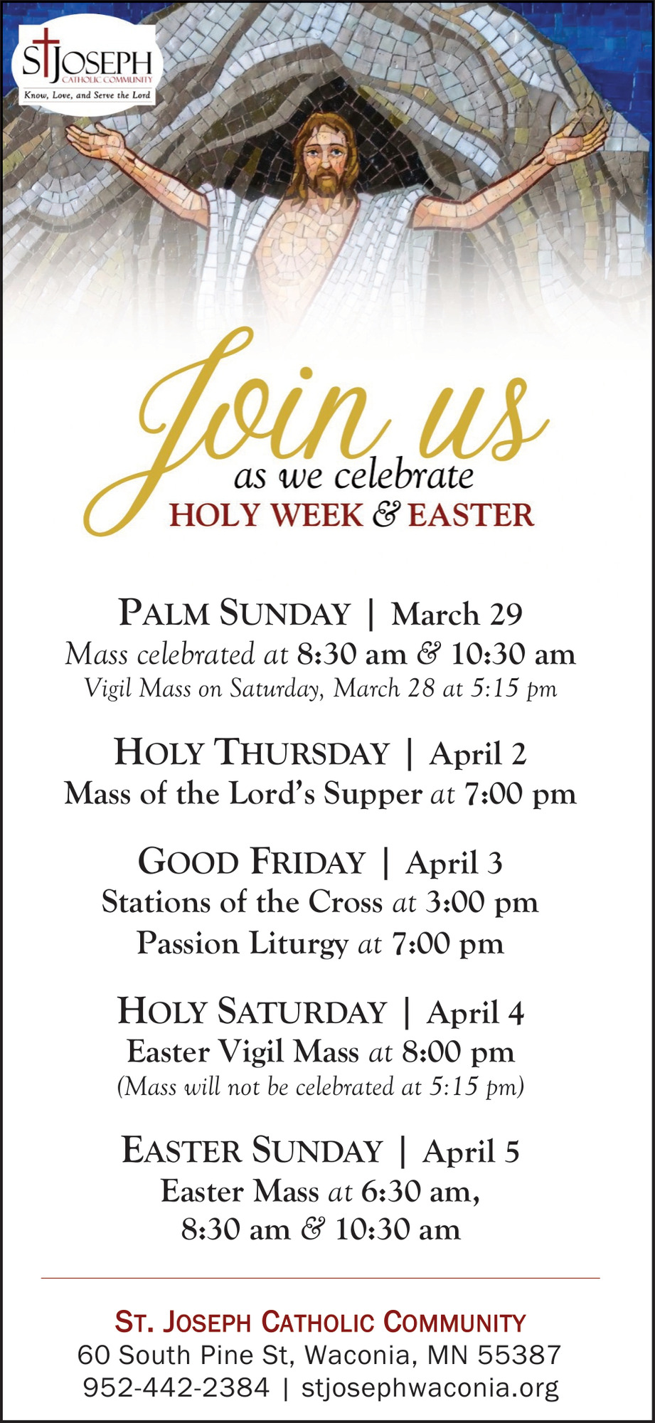 Apr 02, 2026. St. Joseph Catholic Community - Waconia Church Ads from Sun Patriot