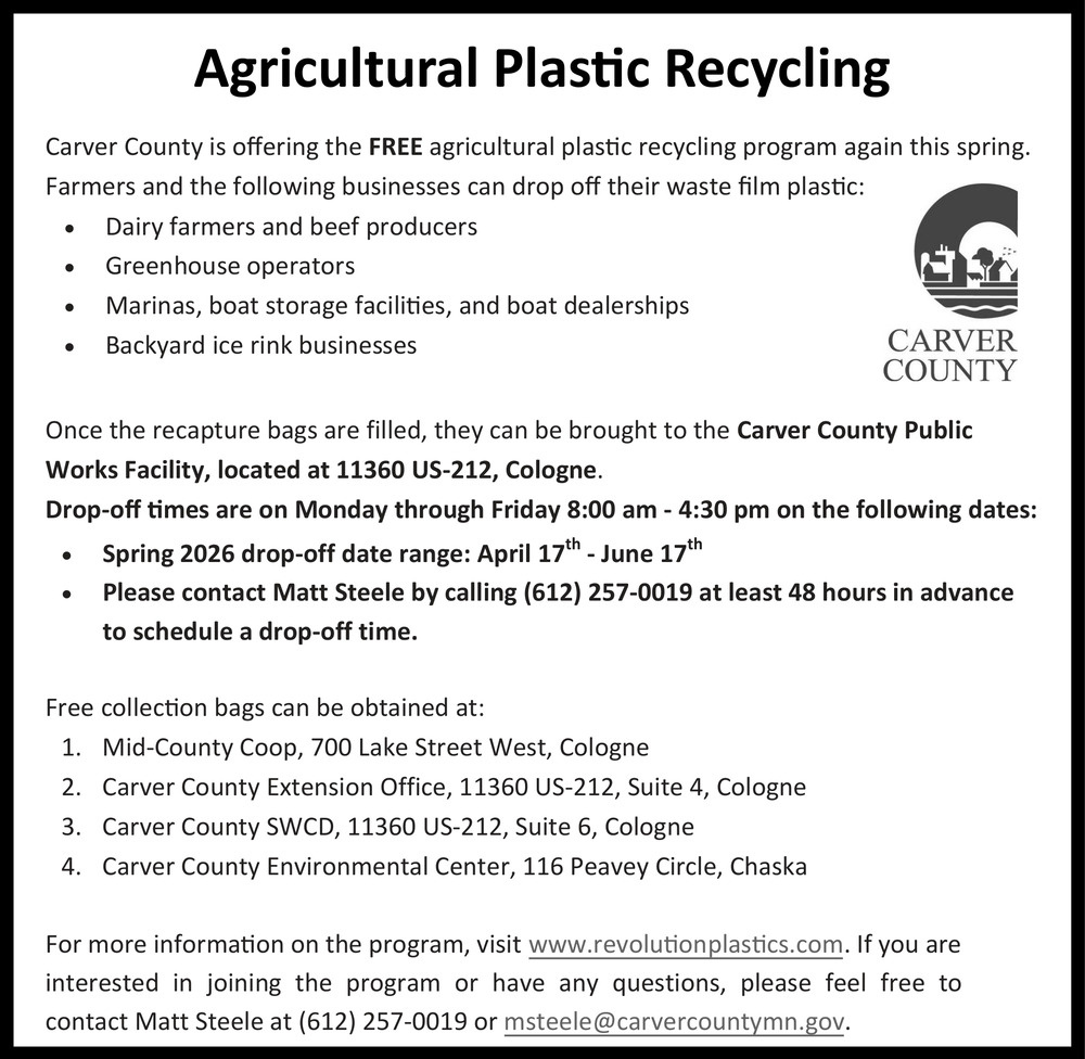 952-361-1500600 East 4th StreetChaska, MN 55318(Carver County Office)