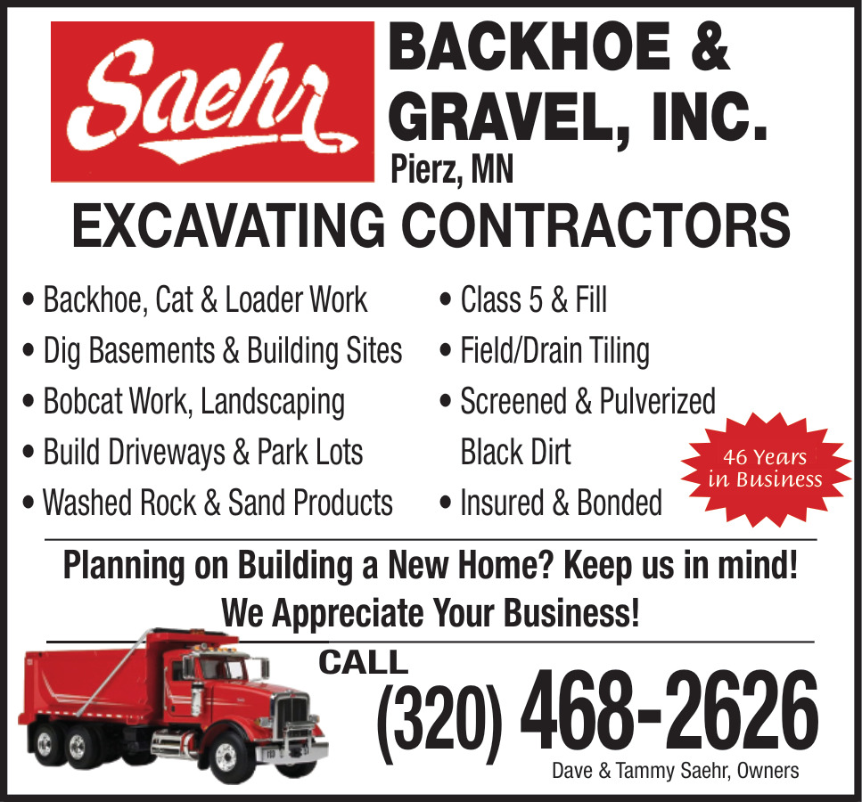 Ads for Saehr Backhoe & Gravel, Inc in Pierz, MN