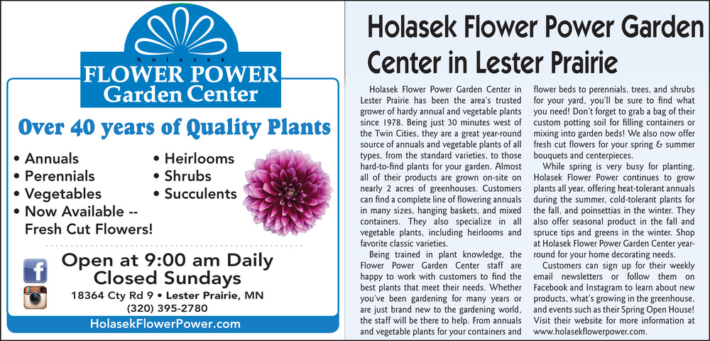 Ads for Holasek Flower Power Garden Center in Lester Prairie, MN