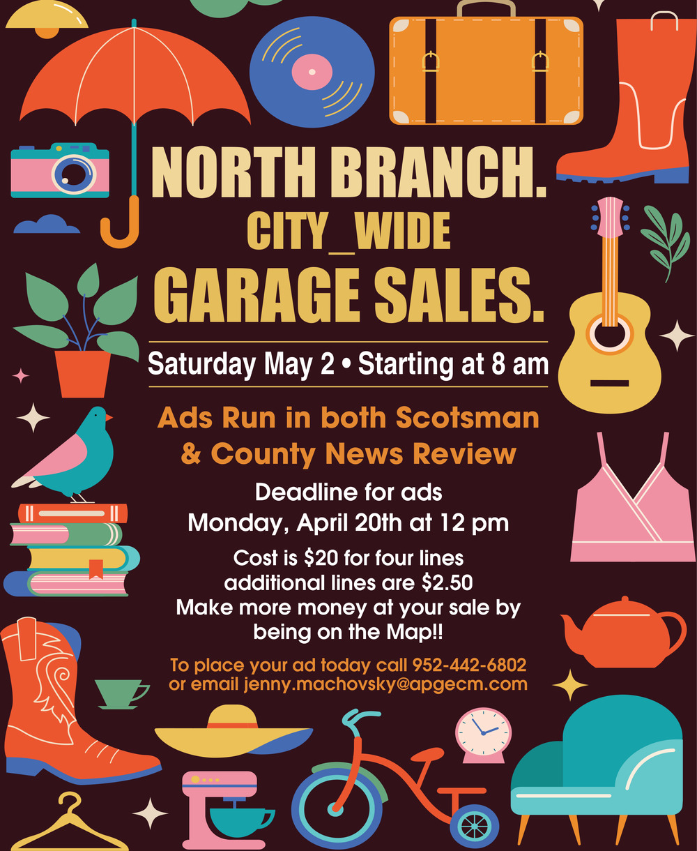Apr 16, 2026. North Branch City - Garage Sale Garage Sales Ads from County News Review