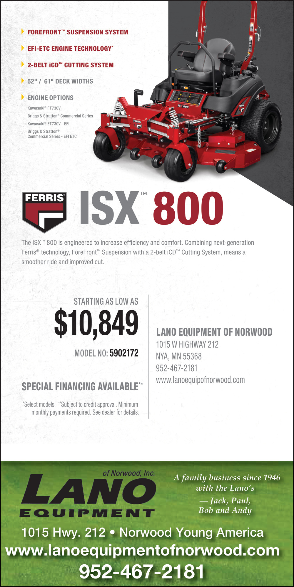 Ads for Lano Equipment in Norwood, MN