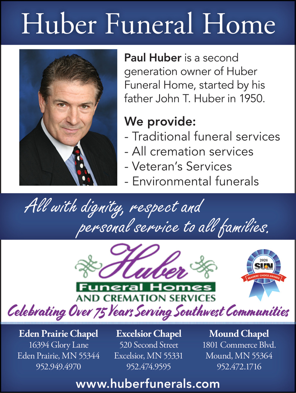 Ads for Huber Funeral Homes in Excelsior, MN