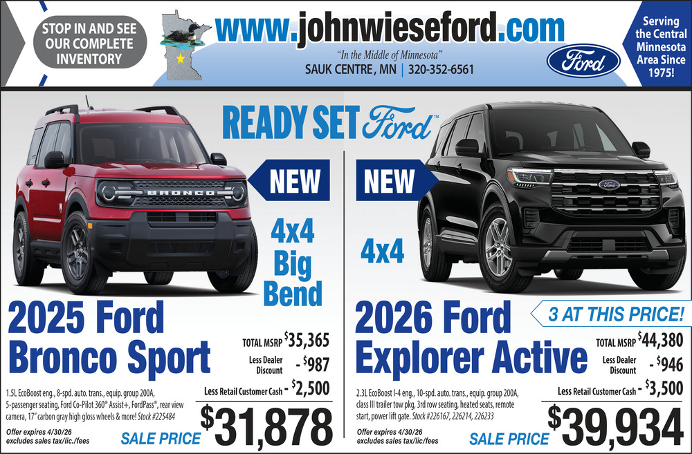 Ads for John Wiese Ford in Sauk Centre, MN