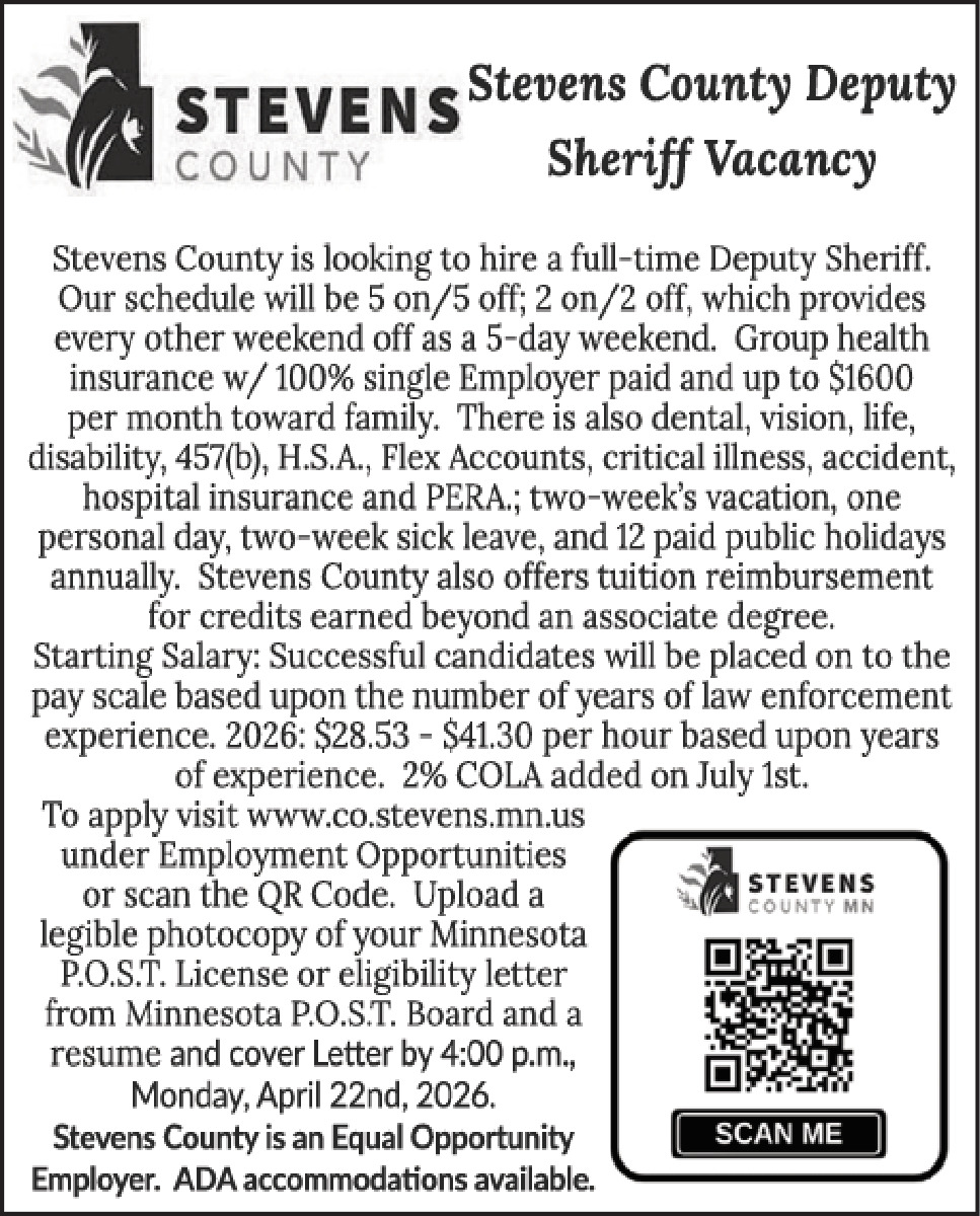 Apr 25, 2026. Stevens County Jobs Ads from Star News