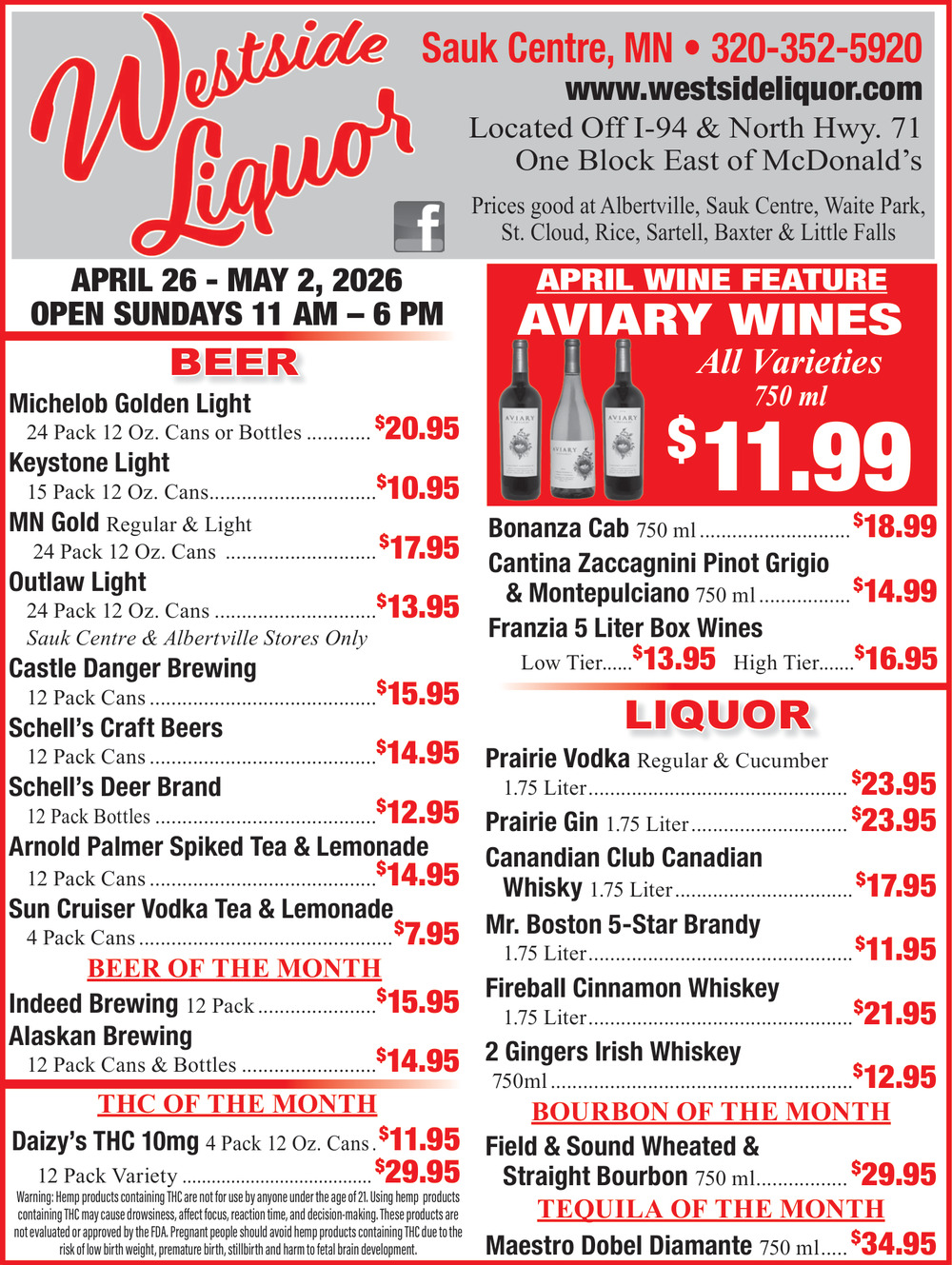 Apr 26, 2026. Westside Liquor Liquor Ads from Dairyland Peach