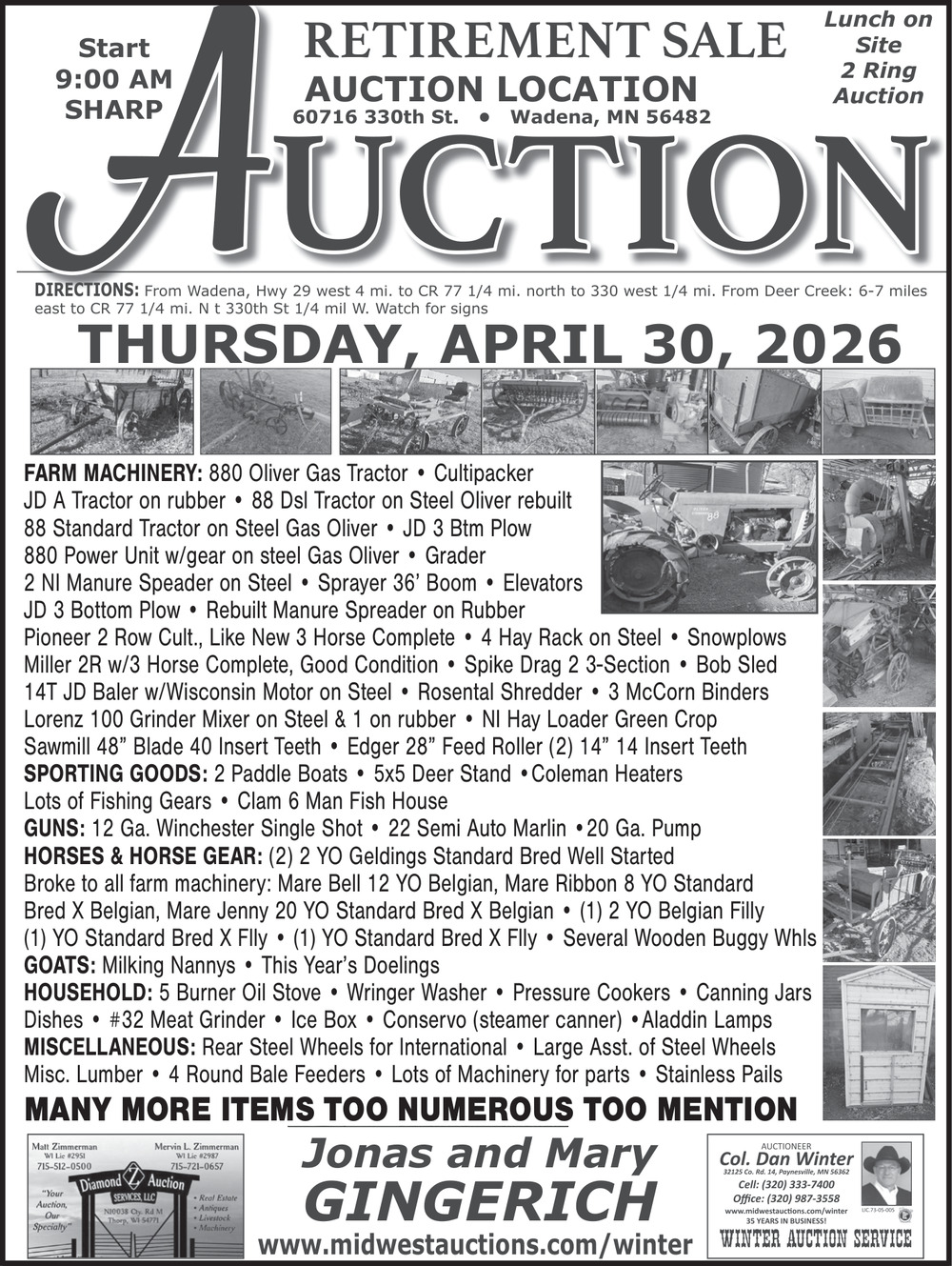 • Retirement Sale Auction in Foley, MN